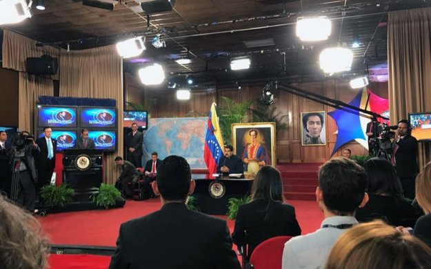 Maduro’s speech was shown on television with a time delay.When regime officials noticed that Reuters journalists who had been invited to the conference were broadcasting Maduro’s comments live, they were forced out of the room.