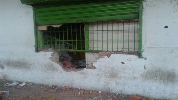 The image below shows how people broke into one establishment by tearing down a section of a wall:
