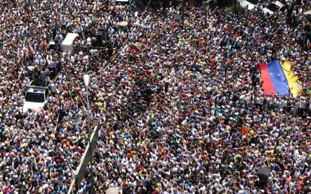 The crowds in Caracas were massive. There, protesters turned out to hear interim president Juan Guaido speak: