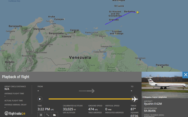 This morning, RA-86496 took off from Venezuela heading east, likely to retrace its route back towards Russia: